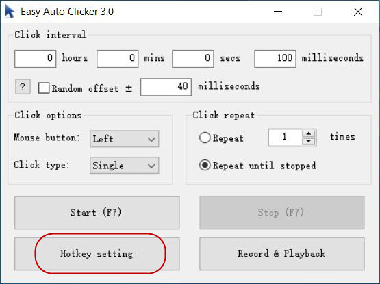 2. Click the Start/Stop button on the shortcut setting box.